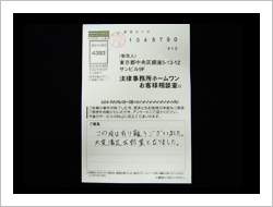 このたびは過払金請求にご協力いただきまして大変ありがとうございました。これからはこのような事が起こらないようにしたいと思います。