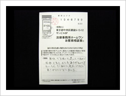 その対応を見つめ直すため、ホームワンでは、ご依頼の事件が終了されたお客様を対象に、アンケートを実施しております。
