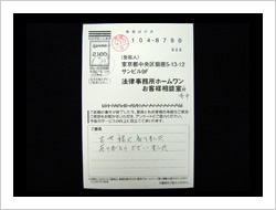 この度は大変お世話になりました。貴社に相談致しまして本当に良かったと思っております。今後違う案件の際にもぜひ相談させて頂きたく思っております。誠にありがとうございました。