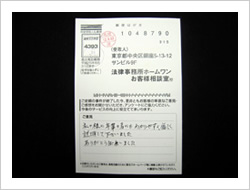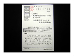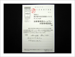 その対応を見つめ直すため、ホームワンでは、ご依頼の事件が終了されたお客様を対象に、アンケートを実施しております。