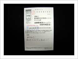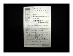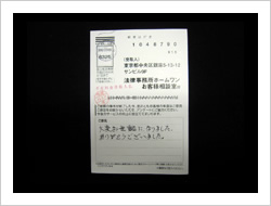 今回はありがとうございました。借金もなくなり、過払金までもどり明るい日々がすごせるようになりました。もっと早くたのめばよかったと思います。
