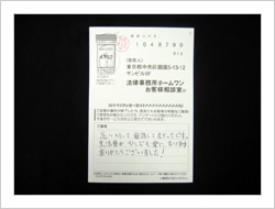 その対応を見つめ直すため、ホームワンでは、ご依頼の事件が終了されたお客様を対象に、アンケートを実施しております。