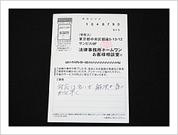 この度は本当にお世話になりました。過払い金でデジタルテレビ、エアコン、冷蔵庫を買わせて頂きます。そしてこれからはお金を大切に使っていきます。貴法律事務所ホームワン様の益々のご繁栄を心からお祈り申し上げます。ありがとうございました。