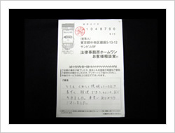 その対応を見つめ直すため、ホームワンでは、ご依頼の事件が終了されたお客様を対象に、アンケートを実施しております。