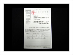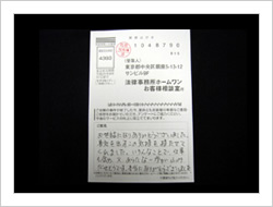 お礼遅くなり申し分けございません。今回はお世話になり大変ありがとうございましたの一言です。感謝しております また相談事があれば相談させて頂きます。