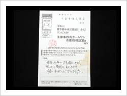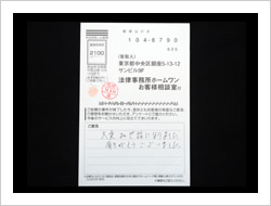 半信半疑での気持ちで相談してみたら・・・まさかと思う気持ちが強かったのですが書類が送ってくるたびにびっくりしたのがホンネでした。ゼロのお金が相談してかえってきて大変ありがたいでした!!