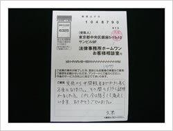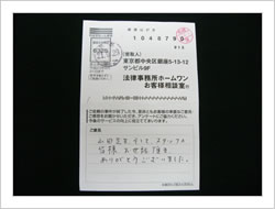 お願いして、よかったと思います。ありがとう御座居ました。(お客様相談室アンケートにて)