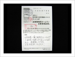 中原弁護士さんや事務員さんのおかげで過払金の返還を受け取ることが出来ました。感謝申し上げます。大変お世話になりました。