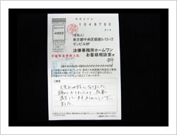 大変お世話になりました。先生、事ム所のみな様本当にありがとうございました。