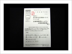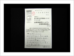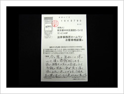 今の度の過払いの件について深く感謝致します 特に弁護士の方々の交渉により多額の過払い金が戻り深く深くお礼申し上げます。今後共私の様に迷っている人達のために尽くして下さい