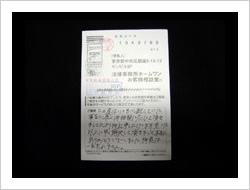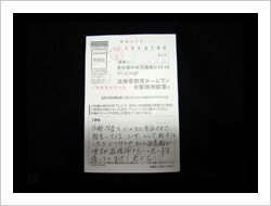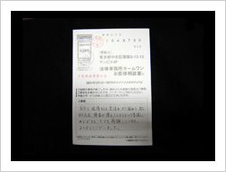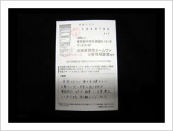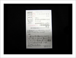 この度はいつも心配していた事を心良く御相談に応じて頂きまして心より御礼申し上げます。思った以上に早く解決して頂きまして本当にありがとうございました。御恩は一生忘れません。