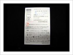 この度は大変ありがとうございました。心から御礼を申し上げます。又、何か別の案件でお力をお借り致す事があるかもしれませんが、是非とも相談に乗ってください。よろしくお願い致します。