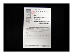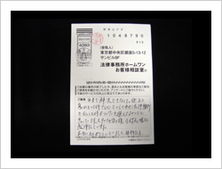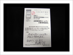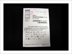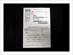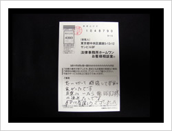 今回は大変お世話になりました。お陰様で借金もなくなり、余裕も出ました。これも先生たちのおかげです。本当にありがとうございました。