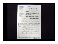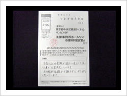 予想以上の金額が過払い金として戻ってきて、大変満足しています。成功報酬金額が小額すぎて、申し訳なく思っています。