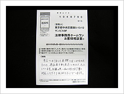 本来なら直接弁護士さんにお会いしてお願いすべきものを電話にて全て完了していただきまして、本当にありがとうございました。感謝申し上げます。