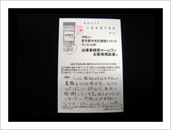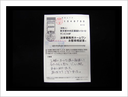 とても電話対応も優しく、書類もとても見やすく、とてもスピーディーに終わり、本当に感謝しています。ありがとうござしました。今後はお世話にならないようにがんばっていこうと思います。