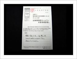すべてのお客様へのサービス向上のため、今後とも率直なご意見・ご感想をお寄せ下さい。
