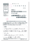 無料相談から丁寧な対応をしていただき、依頼してからも連絡、書類等送付が早くて解決まで時間がかからなかった。ありがとうございました。