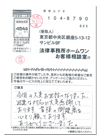 ホームワンでは、債務整理をご依頼されて、事件が終了されたお客様を対象にしたアンケート調査を実施しております。お客様からお寄せいただいたご意見・ご要望・ご指摘は、いったん「お客様相談室」に集約し、改善策を検討したうえで、事務所のメンバー全員で業務改善に取り組みます。