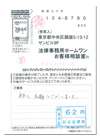 当初、少しの勇気で半信半疑でご相談させてもらい、TELにて30分程、こちらよりの一方的な説明にもかかわらず、弁護士先生、担当者の方々の柔軟で心地よい、スピーディーな実のなる対応に感謝します。また、ふたたびご相談をいたしたい為、その際はよろしくお願い申し上げます。