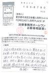 電話で簡単な質問に答え、多額の過払い金が戻ってきました。まさかこんなに!!と思いながら、弁護士の親身な頑張りにとても感謝しております。