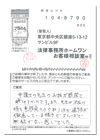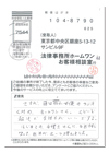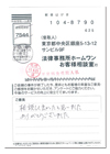 法律事務所にお願いすることが今回初めてのため、比べるものがないのでアンケートのチェックはこの様にさせていただきましたが、ご親切な対応にいつも感謝しておりました。お世話になり、本当にありがとうございました。