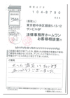 ホームワンでは、債務整理をご依頼されて、事件が終了されたお客様を対象にしたアンケート調査を実施しております。お客様からお寄せいただいたご意見・ご要望・ご指摘は、いったん「お客様相談室」に集約し、改善策を検討したうえで、事務所のメンバー全員で業務改善に取り組みます。