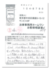 TVでのCMなどで、見てはいたのですが、一歩足を踏み入れる事が出来なかったのですが、皆様、スタッフ他弁護士の方にお世話になり、本当に良かった事実感しています。本当にありがとうございました。