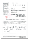 このたびは大変お世話になりました。御蔭様でやっと生活が楽に出来るようになり、主人と喜んでおります。これからは計画的に生活してまいる所存でございます。大変御礼が遅れてすみません。心より御礼申しあげます。