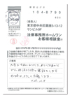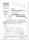 本当にありがとうございました。友人からホームワンの存在を知り、ご相談しましたが、まさか過払金がもらえるとは、本当に感謝しております。ありがとうございました。