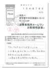 大変お世話になりました。とっても良かったです。相談する時は電話をします。その時は、よろしくお願いします。