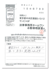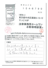 一度も面識のない者に対し、こんな難しく面倒な事柄を懇切丁寧な、そして迅速に解決して下さり有難うございました。貴所の様な法律事務所が存在することを初めて存じ上げました。御発展と各位の御多幸を祈念申し上げます。