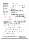この度はお世話になりました。余り信用していなかったのですが、大変失礼いたしました。申し訳ありませんでした。大変助かり感謝しています。