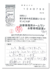 この度は、大変御世話に成り、有難う御座いました。又、業者からの最終報告書が有り、それに事務所側の対応が良く、大変ほっとしております。