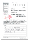 ホームワンでは、債務整理をご依頼されて、事件が終了されたお客様を対象にしたアンケート調査を実施しております。お客様からお寄せいただいたご意見・ご要望・ご指摘は、いったん「お客様相談室」に集約し、改善策を検討したうえで、事務所のメンバー全員で業務改善に取り組みます。
