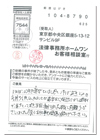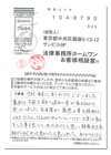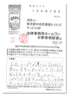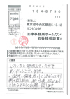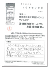 今まで本当にありがとうございました。最初は不安で本当に過払金が取れるのかと思っていました。先生達が最悪の事も説明してくれて、どっちになるか分からないけど、大変な思いをした事を思うと、やってみようと思い、結果先生方に助けられて、やって良かったと思いました。
