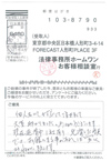 ホームワンでは、債務整理をご依頼されて、事件が終了されたお客様を対象にしたアンケート調査を実施しております。お客様からお寄せいただいたご意見・ご要望・ご指摘は、いったん「お客様相談室」に集約し、改善策を検討したうえで、事務所のメンバー全員で業務改善に取り組みます。