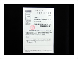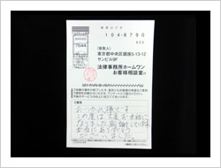 ホームワンでは、債務整理をご依頼されて、事件が終了されたお客様を対象にしたアンケート調査を実施しております。お客様からお寄せいただいたご意見・ご要望・ご指摘は、いったん「お客様相談室」に集約し、改善策を検討したうえで、事務所のメンバー全員で業務改善に取り組みます。