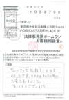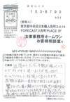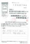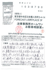 この度は大変有難うございました。数ある法律事務所さんの中で、同市内、及び県内に相談を致したところ、なかなか良い返事をもらうことができず、思いきって大手の御社に相談させて頂きました。迅速に対処して頂いたことで、今後安心して向かうことが出来ます。