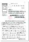 弁護士費用もこんなに少額では申し訳ないと思うくらいの金額で、実際に振り込まれた通帳を見るまでは信じられないほどでした。今後も、もし何か問題が起きた際には、是非、御社にご相談させていただきたいと思っております。本当にありがとうございました。笹森先生にも宜しくお伝えくださいませ。S.T様(仮名)/静岡県 2020年03月