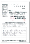 ありがとうございました。何人もの方が喜んで居られると思っています。ホームワンの益々の御発展をお祈りします。草草