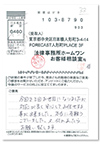 ホームワンでは、債務整理をご依頼されて、事件が終了されたお客様を対象にしたアンケート調査を実施しております。お客様からお寄せいただいたご意見・ご要望・ご指摘は、いったん「お客様相談室」に集約し、改善策を検討したうえで、事務所のメンバー全員で業務改善に取り組みます。