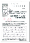 ホームワンでは、債務整理をご依頼されて、事件が終了されたお客様を対象にしたアンケート調査を実施しております。お客様からお寄せいただいたご意見・ご要望・ご指摘は、いったん「お客様相談室」に集約し、改善策を検討したうえで、事務所のメンバー全員で業務改善に取り組みます。
