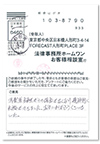 ホームワンでは、債務整理をご依頼されて、事件が終了されたお客様を対象にしたアンケート調査を実施しております。お客様からお寄せいただいたご意見・ご要望・ご指摘は、いったん「お客様相談室」に集約し、改善策を検討したうえで、事務所のメンバー全員で業務改善に取り組みます。