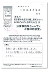 前回、今回と過払い金に対して大変満足しています。感謝を申し上げます。