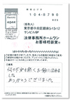 この度は大変お世話になり、本当に、本当にありがとうございました。戻ってきた過払い金は大切に大切に使わせていただきます。感謝です。