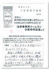 初めから分かりやすく、とても親切に対応していただきました。本来であればお会いしてお礼を申し上げたいところですが、遠方ですので書面にて失礼させていただきます。細やかなご対応に、心から感謝申し上げます。嶋田さんはじめ、皆様には本当にお世話になりありがとうございました。