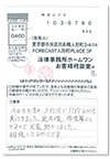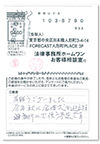 この度は、大変お世話になりました。思い切って相談した事に対し、親切、スピーディーに解決していただき、感謝申し上げます。本当に有り難うございました。