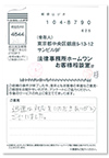 最初の年配の女性の方の聞き取り方が少し強かった。悪いわけではありません。聞き取り漏れがないように一生懸命なのは伝わっています。アンケートが見えないように保護シールがあったらいいかなと思いました。