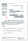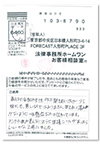 たいへんお世話になりました。不安な中での相談でしたが、わかりやすく対応していただいたので、安心しました。ありがとうございました。